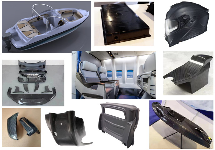 Производство пресс-форм, обработка композитных материалов и термоформование толстых листов в таких отраслях, как аэрокосмическая промышленность, железнодорожный транспорт, интерьер и экстерьер автомобилей, спортивные товары, медицинская косметика, бытовая техника, изделия ручной работы и сантехника.